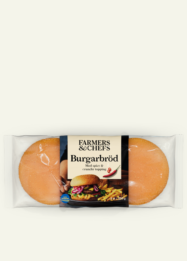 Vårt burgarbröd är mjukt, luftigt och fyllt med smak. Den fina balansen mellan sötma och en lätt hetta ger brödet en unik karaktär, medan den krispiga toppingen tillför en extra dimension. Resultatet är ett välbalanserat bröd som kompletterar innehållet utan att ta över.